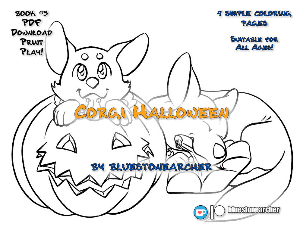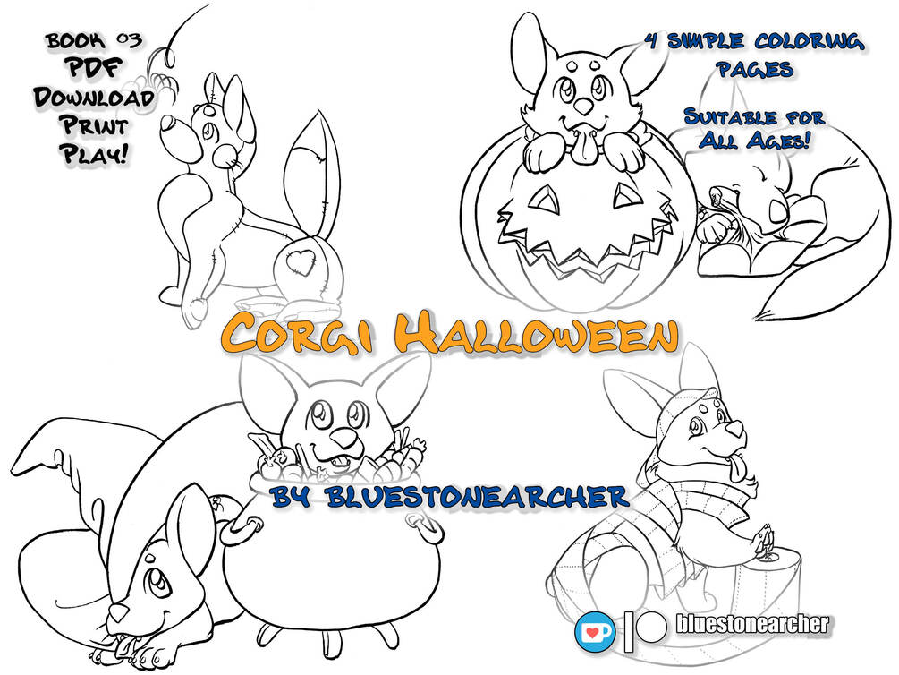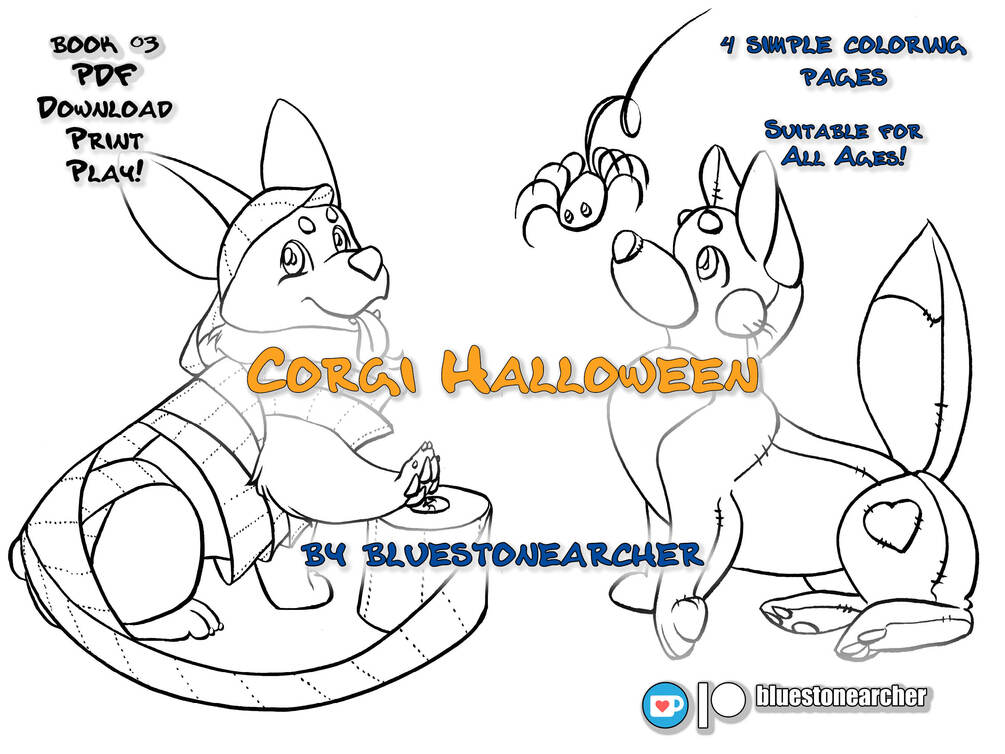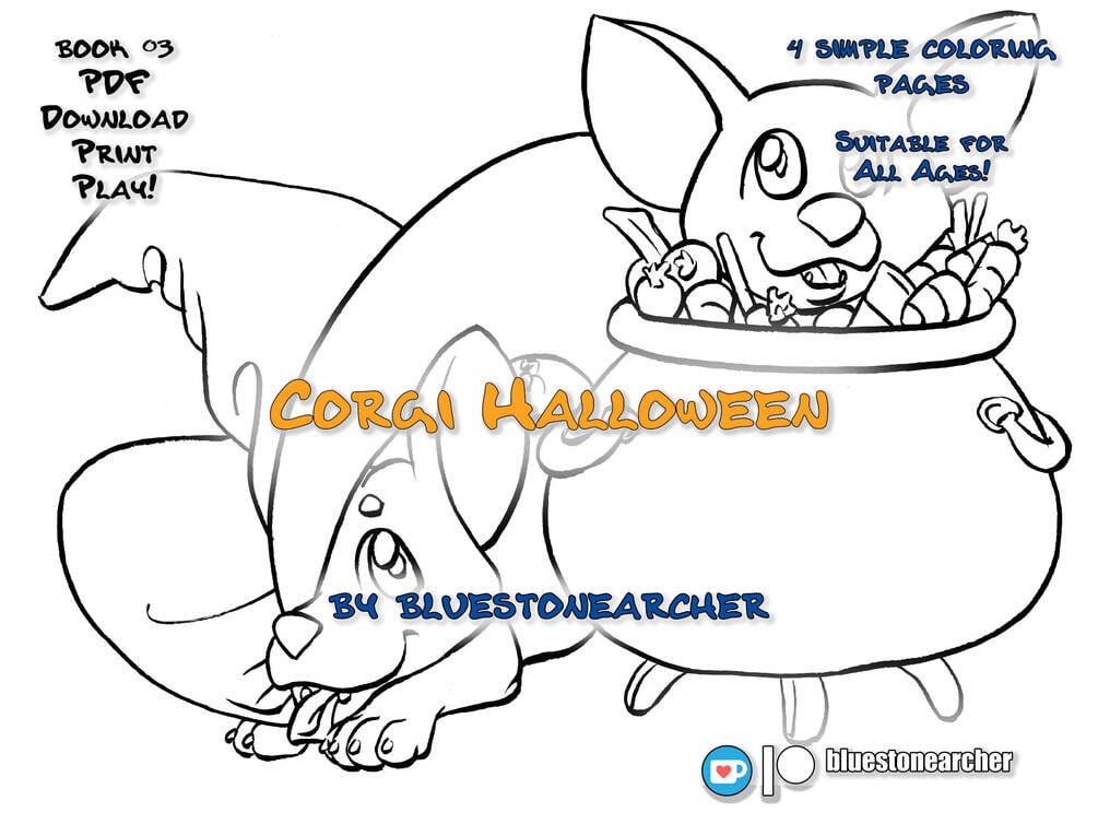 A simple set of four corgi coloring pages! I made these to have a homemade activity to add into the Halloween goodie bags! You can print them off on your home and color at your leisure.